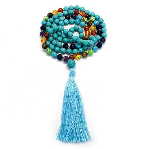 2025 phổ biến Bohemian quốc gia gió thông rìa dài vòng cổ 8mm Turquoise 108 Phật giáo hạt vòng cổ .. PB -- 018